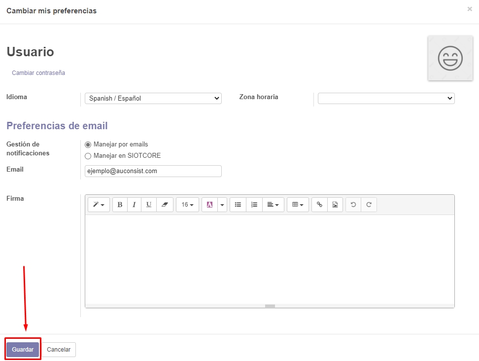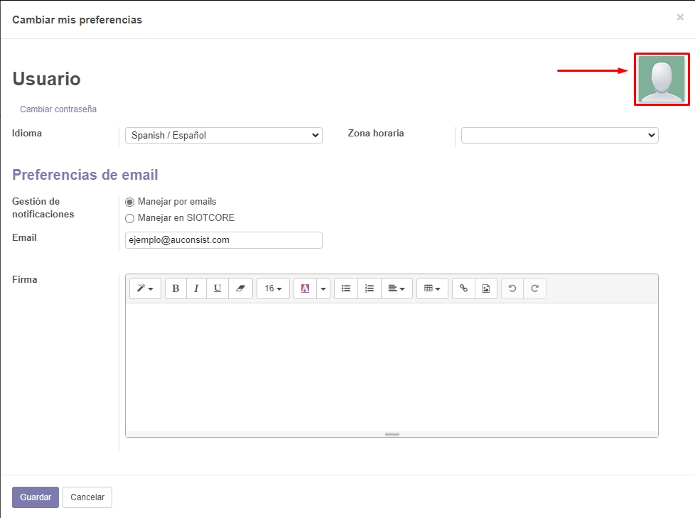 Colocar el puntero en el Avatar de imagen, seguido dar clic en el lápiz para buscar la imagen en su equipo.