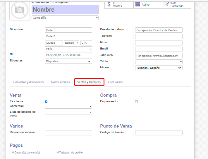 Seguido damos clic en ventas y compras e ingresamos los datos solicitados.