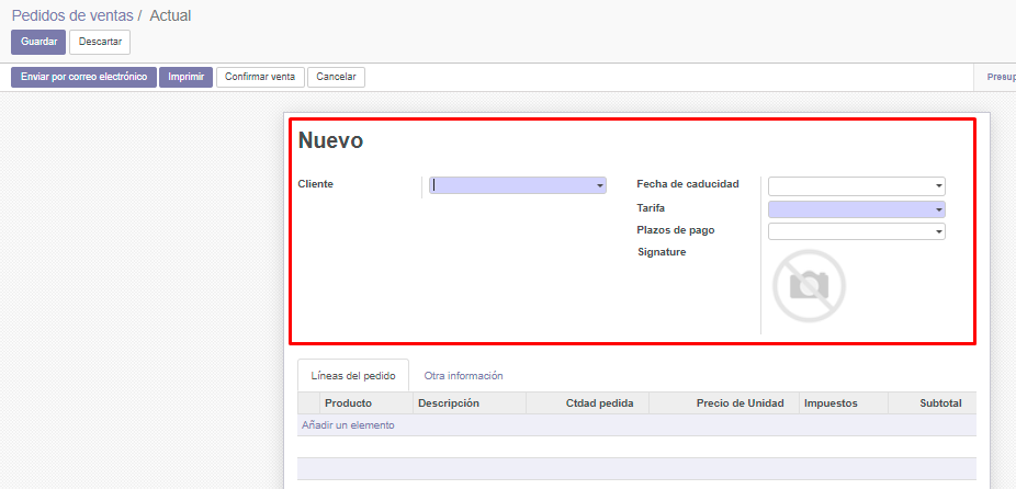 Ya ingresados los datos de nuestro pedido procedemos a dar clic en guardar.